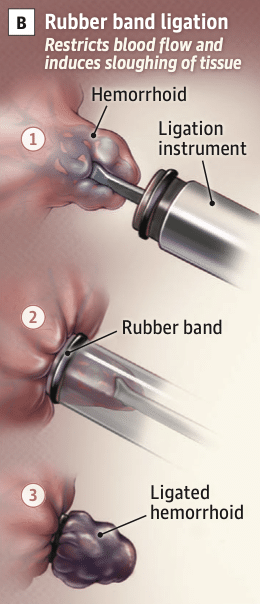 Rubberbandligatie is voor het behandelen van aambeien de eerste keuze. Hiermee wordt na het uitwendige onderzoek een kleine kijkbuis ingebracht waarmee via een speciaal apparaat de aambeien met een elastiekje (rubberband) worden afgebonden. Deze behandeling kan een mild drukkend en ongemakkelijk gevoel geven maar doet geen pijn.